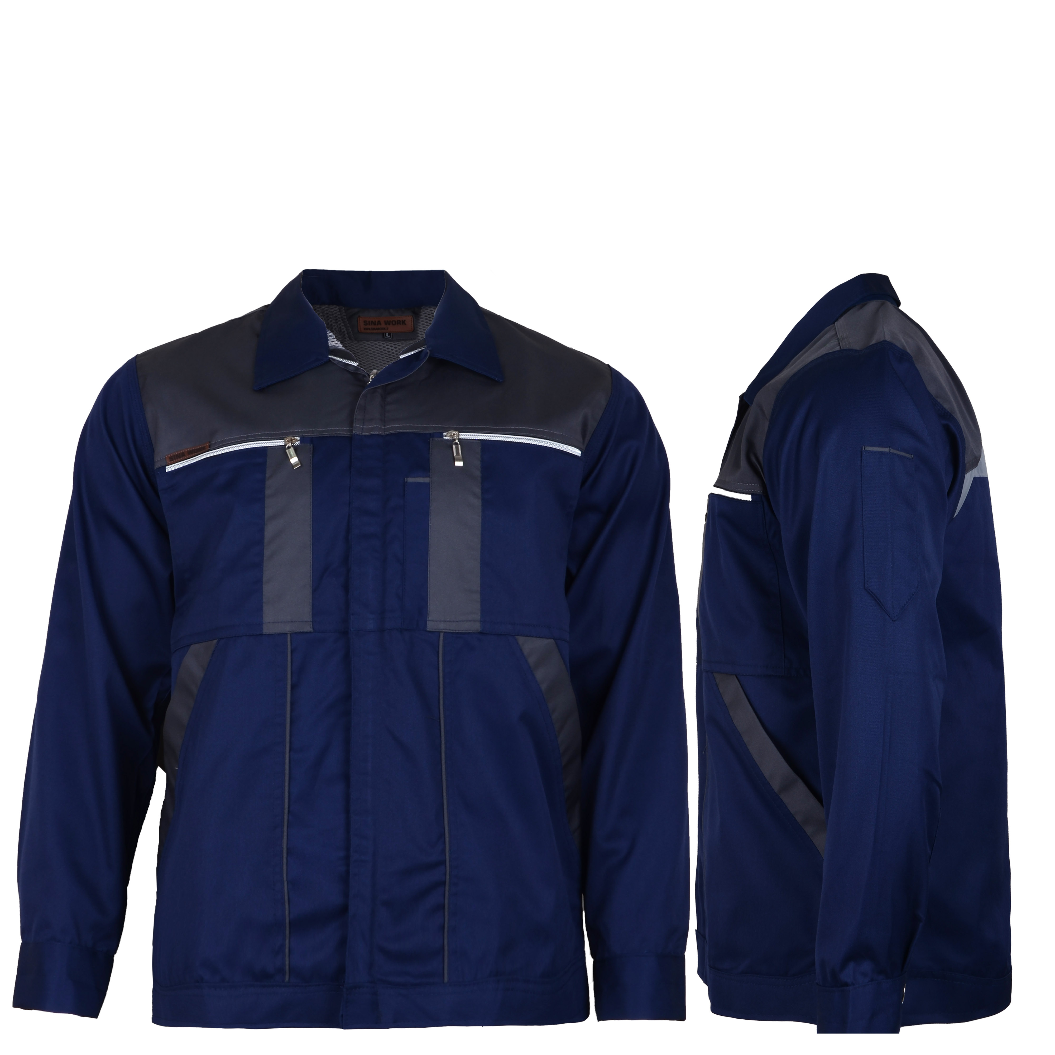 لباس کار ضد چروک، رنگ ثابت، بدون آبرفت، خوش فرم و مقاوم در برابر شست و شو است.